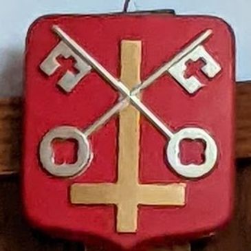 PETER: Brother of Andrew who was martyred during Nero's persecution. According to legend Peter was crucified upside down at his own request holding himself to be unworthy to be crucified upright the same as his Lord. Note also the keys of the kingdom from Jesus's statement, "I will give you the keys of the kingdom of heaven. (Matthew 16.19)